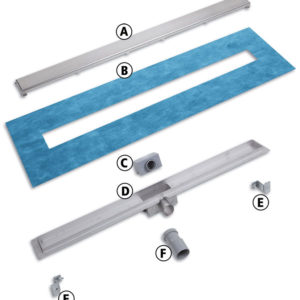 EURODESAGÜE-1701S/1702S/1703S on lineaarinen viemäriaukko vaakasuoralla poistolla, ruostumatonta terästä AISI 304 rakennetuille suihkualustoille, sekä remonttitöihin että uudisrakennuksiin. Korkeus säädettävissä sivujaloilla 6,7 cm – 9,6 cm välillä. Viemäriaukon voi sijoittaa sekä suihkualustan keskelle että seinän viereen. Irrotettava lappo-osa helppoa ja mukavaa puhdistamista varten. Viemäriaukossa on ulkokehys, jonka avulla sitä voidaan käyttää kaikenlaisissa pinnoitteissa, joiden korkeus on enintään 14 mm. Saatavissa kolme eri pituutta (60, 70 ja 80 cm), kolme eri viimeistelyä: